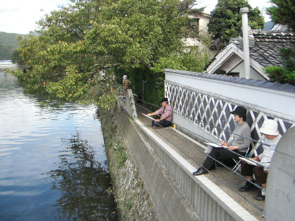 - 松崎港や伊豆文邸などをスケッチされている方が多くいました。