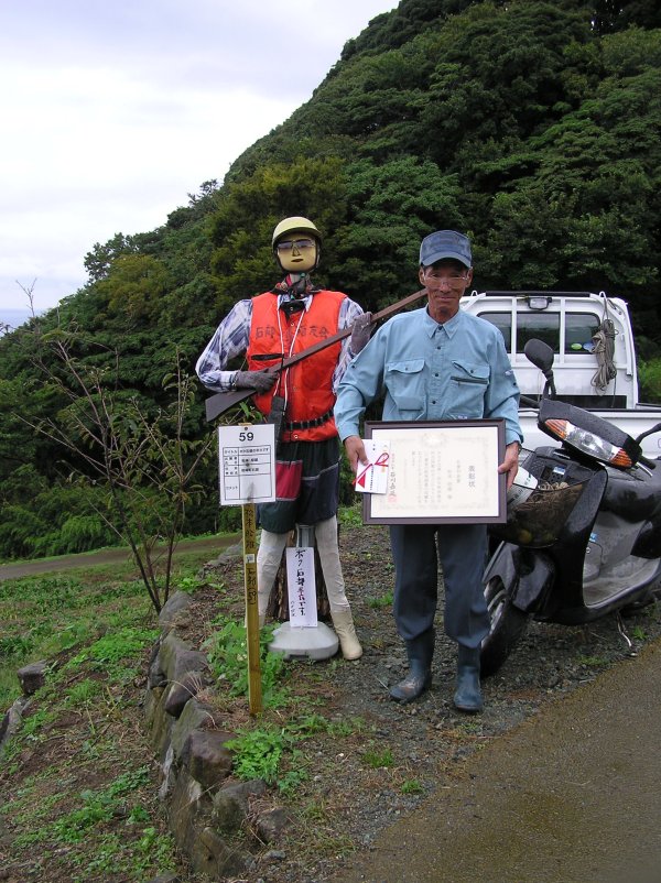 - 松崎町石部赤根田村全国かかしコンテストの審査会が行われました。手の凝った作品、ユーモアあるものなど応募された73体のかかしを松崎町長らが審査しました。名誉村長賞(県知事賞)は石部の松本昭雄さんが受賞しました。