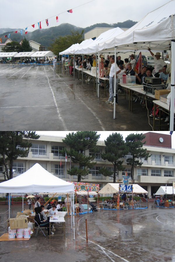 - 先週の雨で延期されていた町民体育大会が、松崎小学校グランドで開催されました。 しかし、開始間もなく雨が降り始め中止となってしまいました。
