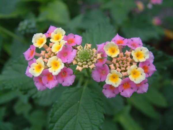 - ランタナの花が綺麗なピンク・黄色の色をつけ咲いています。
