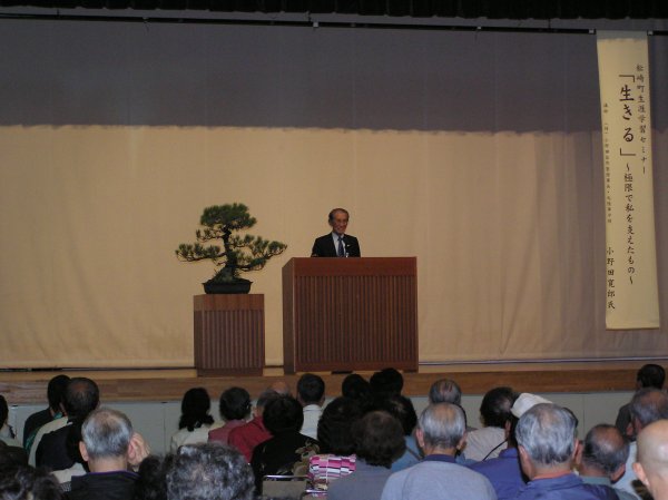 - 昨晩の話題ですが、(財)小野田自然塾理事長・元陸軍少尉小野田寛郎氏による演題「生きる」の生涯学習セミナー講演が環境センターで行われ、多くの方が聴講しました。
