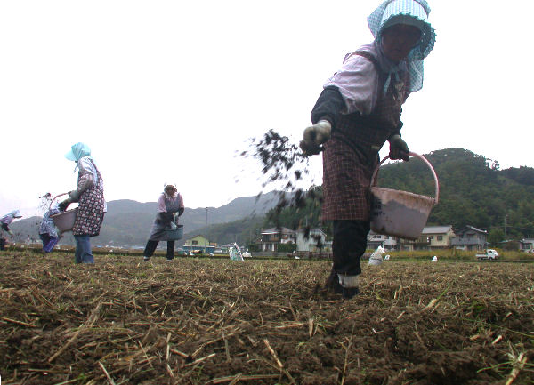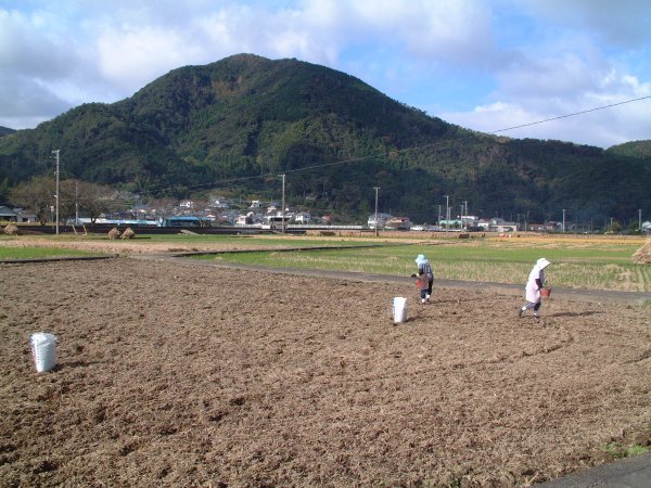 - 岩科野田地区の約1反の田へワイルドフラワー種まきが行われました。那賀の大規模花畑と同じアフリカキンセンカ等が咲く予定です。