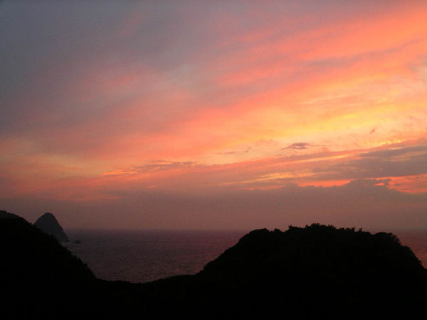 - 雲見・千貫門の夕景です。 水平線に沈む夕陽を受けた景色。自然はすばらしい。