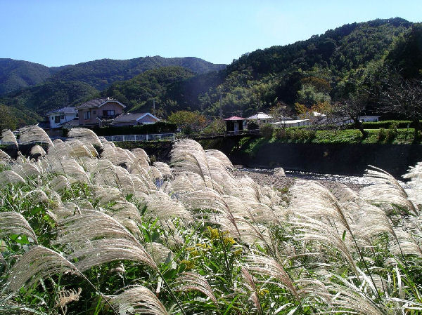- 風のある秋晴れの1日でした。那賀川堤では、日差しを受けたオギの花が風になびき白く輝き、秋の深まりを感じます。