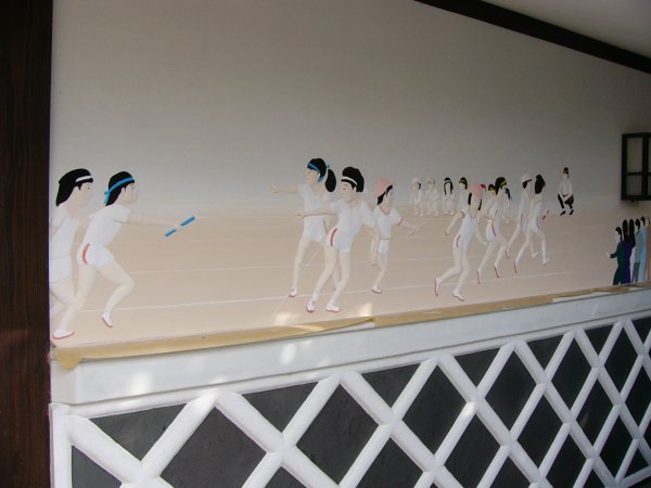 - 中瀬邸足湯に左官職人山本堪一氏の漆喰壁画が完成しました。これからの町を支える子供達にエールを送る気持ちを込め、子供を題材とした作品です。