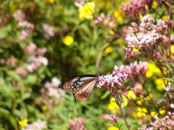 - 道の駅花の三聖苑のフジバカマの花に珍しいアサギマダラチョウがたくさん蜜を吸いにきていました。