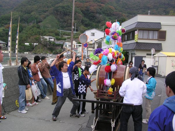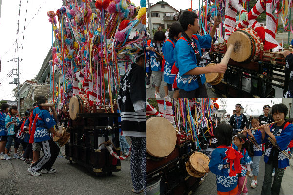- 三浦温泉にある石部区では、伊志夫神社まつりが行われています。 区内を太鼓台が、練っています。