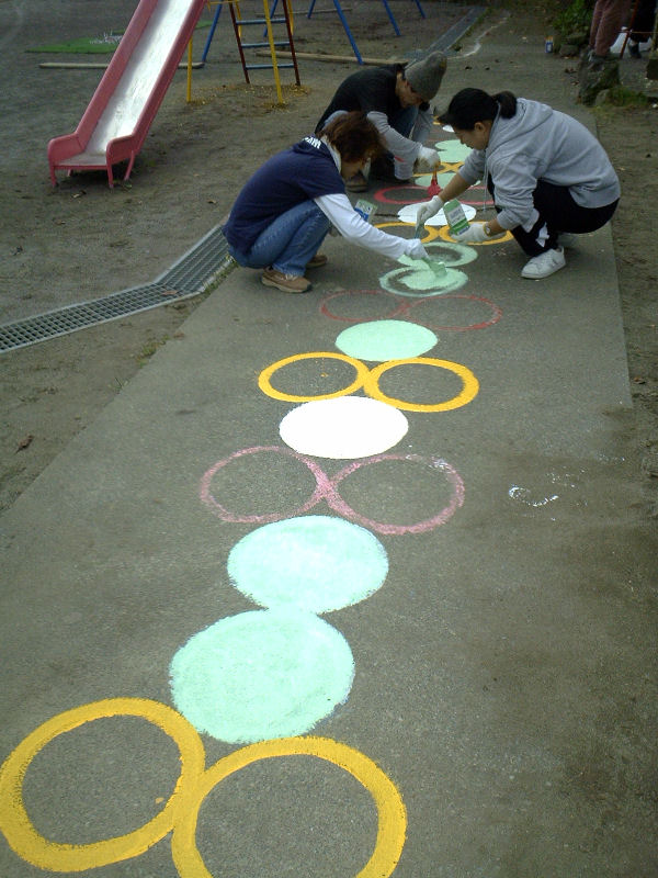 - 中川幼稚園では、PTAによる奉仕作業が行われました。 ブランコや滑り台・ジャングルジムなどケレン掛けされ、ペンキの塗り替え作業が行われました。