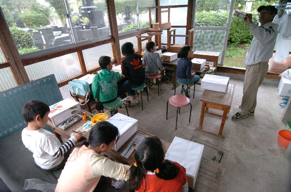 - 静岡県主催で首都圏の小学生5・6年生と松崎小学校5・6年生が合同でが行われました。昨日からの2日間松崎町特産品の桜葉工場や石部棚田を見学し、漆喰鏝絵体験などをしました