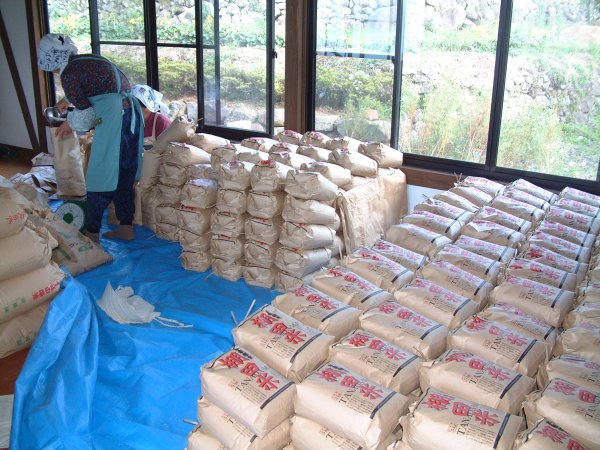 - この秋収穫された石部棚田米の袋詰め作業が行われました。新米は会員の皆様に配布されます。