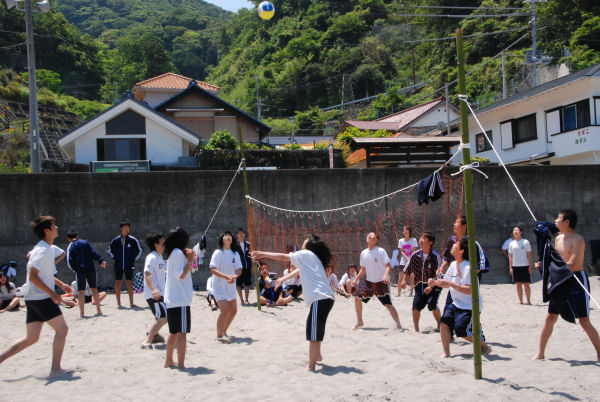 - 岩地地区では、5月の中旬から海水浴シーズンまでの間、修学旅行生の受け入れを行っています。
