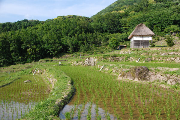 - 石部の棚田では、稲が順調に成長しています。田植え後には、土色だった田んぼも苗の生育によって緑色になってきました。