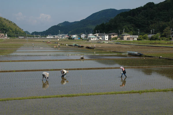 - ゴールデンウィークまで花畑でにぎわった中耕地も、田んぼに水がはられ田植真っ盛りとなりました。
