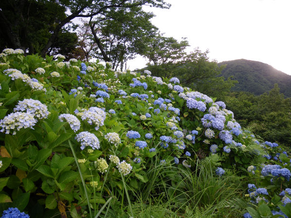 - 今日も梅雨らしい厚い雲に覆われた1日となりました。こんな天気でも牛原山アジサイの丘では、アジサイがきれいに咲いています。