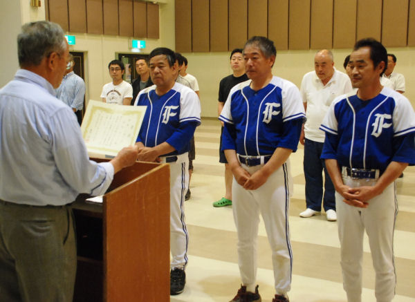 - 昨晩、環境センター文化ホールでは、生涯学習ソフトボール春季大会の閉会式が行われました。今大会は1部リーグ船田チーム、2部リーグは金沢チームが優勝しました。