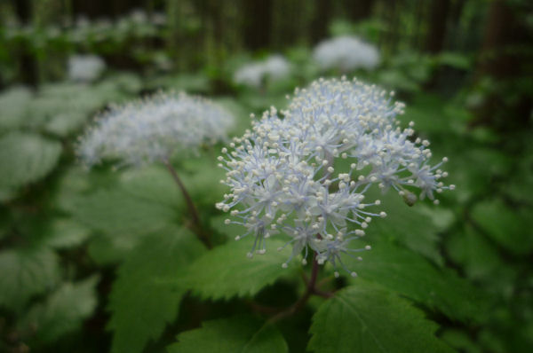 - 町内の山間部などでは、コアジサイが見ごろとなっています。