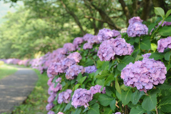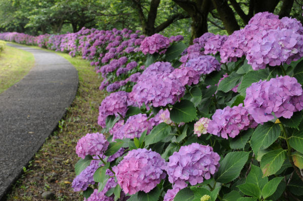 - 那賀バイパスでは、紫色のアジサイが見ごろを迎えています。早く開花したものは花が終わりかけていますので、今週末くらいまでが見ごろだと思います。