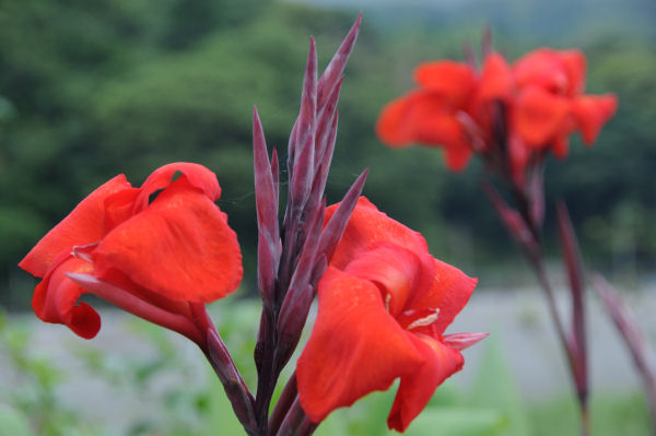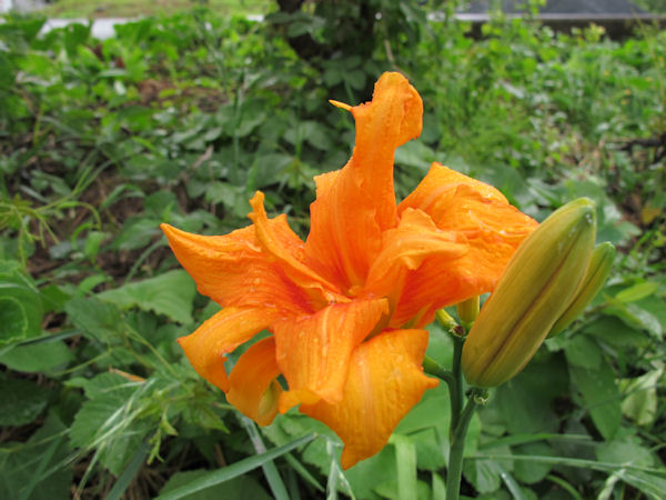 - 水路わきのあぜ道で、オレンジ色のヤブカンゾウが咲き始めています。 つぼみもたくさん見られ、これからきれいに咲きそうです。