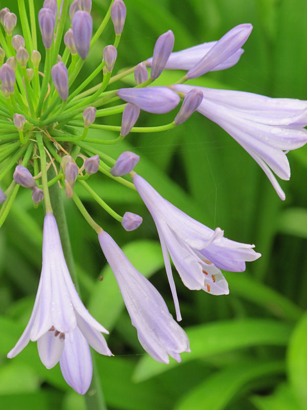 - 町内の花壇では、アガパンサスが咲き始めました。 つぼみを天に向けたくさんの花をつけています。