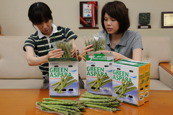 - 北海道帯広市から特産品のアスパラが届きました。このアスパラは町の給食センターへ持ち込み子どもたちの給食として提供されます。