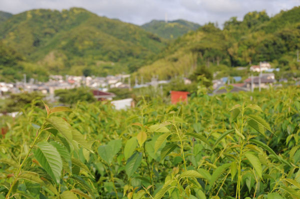 - 松崎町が日本一の生産量を誇る桜葉の畑です。梅雨の雨の恵みを受けて、収穫の最盛期を迎えました。