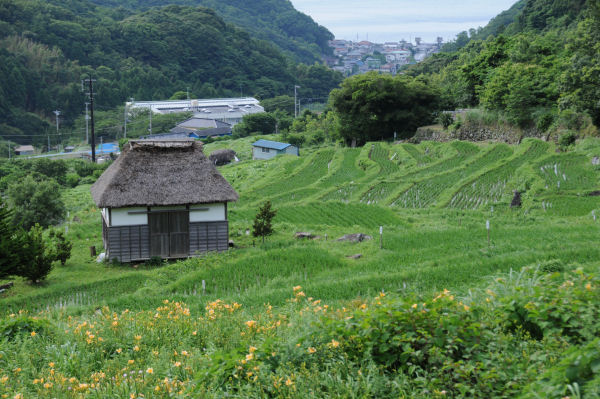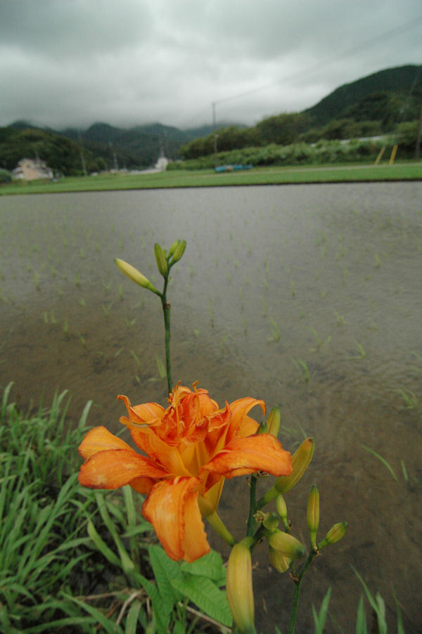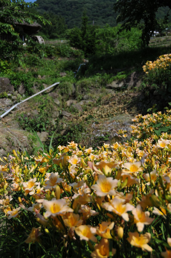- 石部の棚田では、ヘメロカリスがだいぶ目立つようになってきました。スカシユリは現在、満開になっています。