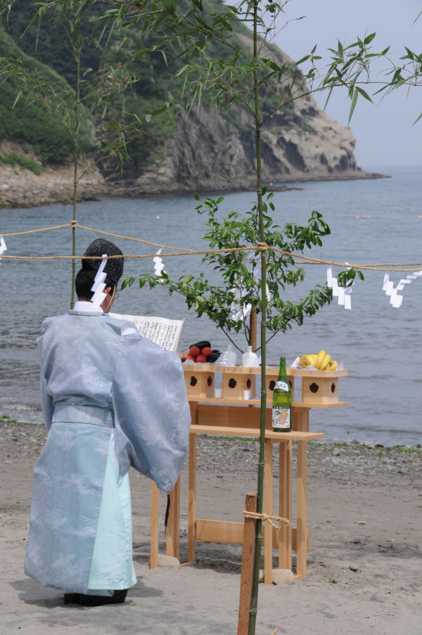 - 石部海岸では、夏の海水浴場開設期間中の無事故を祈願する神事が行われました。