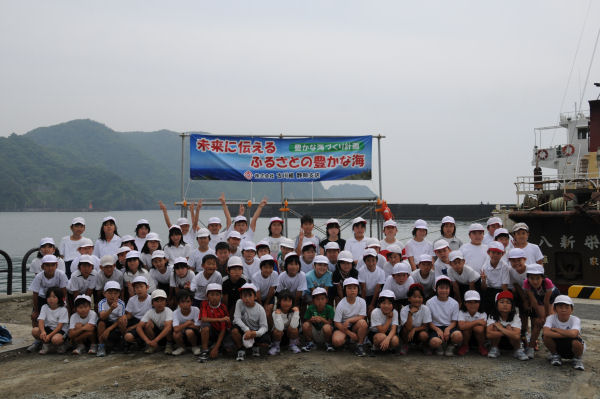 - 港湾や漁港工事を行っている株式会社古川組の社会貢献事業の一環として、松崎小学校4年生71人が松崎新港にてカサゴの稚魚500匹を放流しました。
