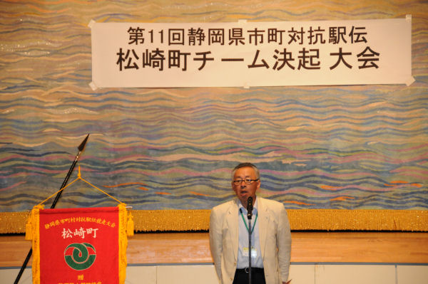 - 昨晩、環境センターでは、12月に静岡市で開催される第11回市町対抗駅伝の決起大会が行われ、町長から監督へ団旗が付託されました。候補選手は明日から練習を開始し、上位進出を目指します。