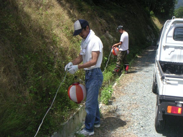 - 雲見地域おこしの会では、5月末から6月にかけてホタルの乱舞が見られた花沢公園にて、提灯などの撤去作業を行いました。
