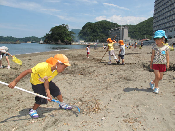 - 松崎海岸では、松崎幼稚園、聖和保育園とワークショップ・マナの交流会が行われました。