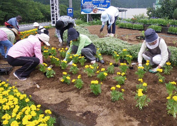 - 花の会は、町の花壇の管理をしています。今日は、建久寺花壇に花を植える作業を行いました。