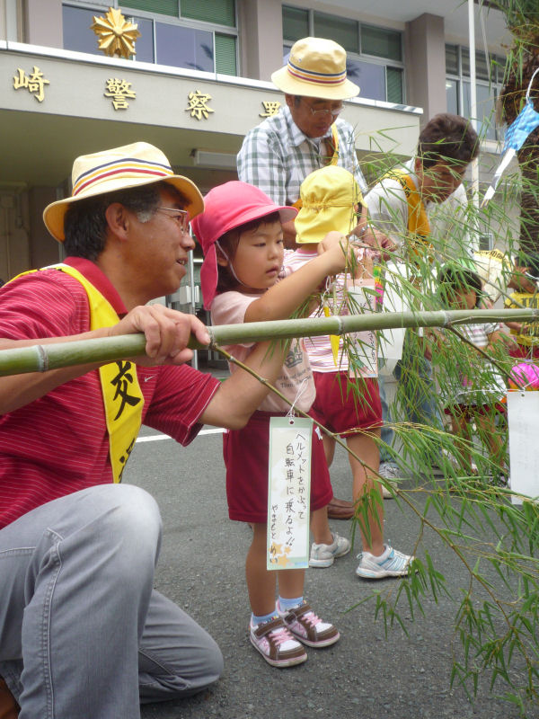 - 今日はあいにくの雨模様の天気となり、星空は見えそうにありませんが、七夕です。松崎警察署では、幼稚園児が交通安全に関する願い事を短冊に書いた笹飾りが玄関前に設置されました。