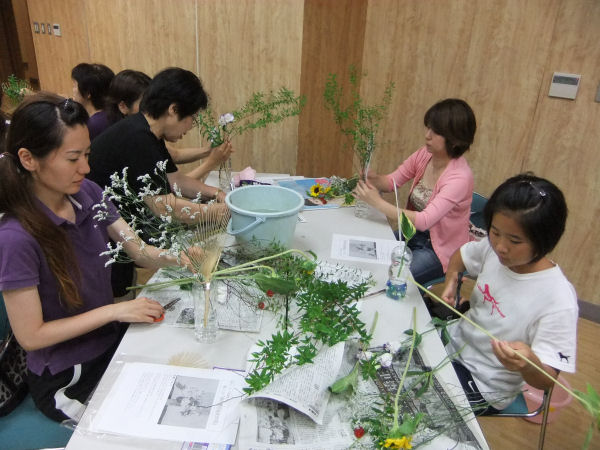 - 松崎町生涯学習教室「楽しい生け花教室」の第1回目が開催されました。 「涼」を感じる生け花をテーマに、ペットボトルやうちわを再利用して、生け花に取り組みました。