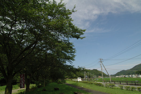 - 昨日から降り続いた雨も上がり、今日はいい天気に恵まれそうです。 那賀バイパスは、桜の青々とした葉が青い空に映えています。