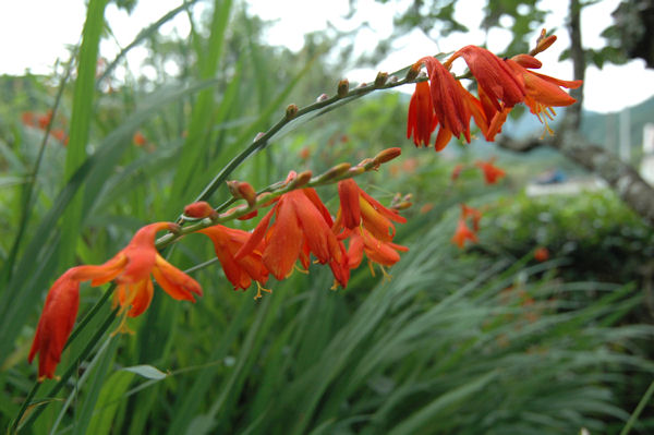 - 町内では、ヒメオウギスイセンが鮮やかなオレンジ色の花を咲かせています。