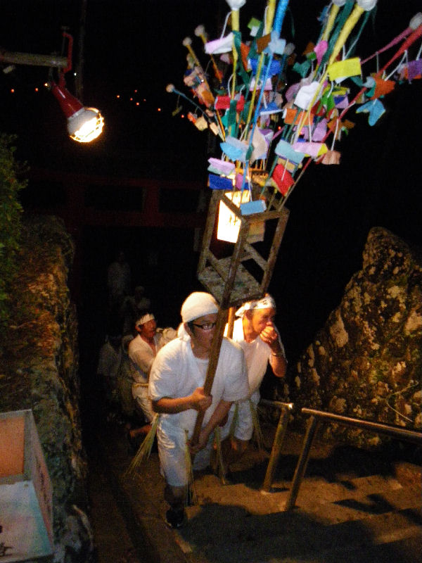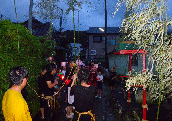 - 岩科峰地区天王祭では、夜になると岩科側に入り身を清める「せんごり」が行われました。