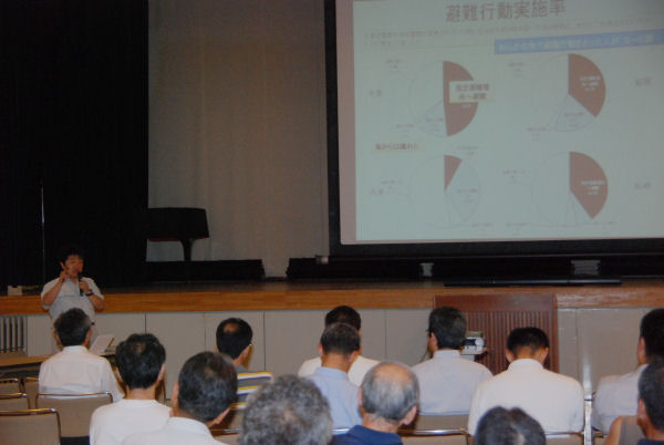 - 昨晩、環境センターでは、今年の2月に発生したチリ地震による津波で避難勧告が出された地区を対象としたアンケート調査の結果報告および今後の津波に対する避難行動の注意などについて専門家をお招きし、講演が行われました。