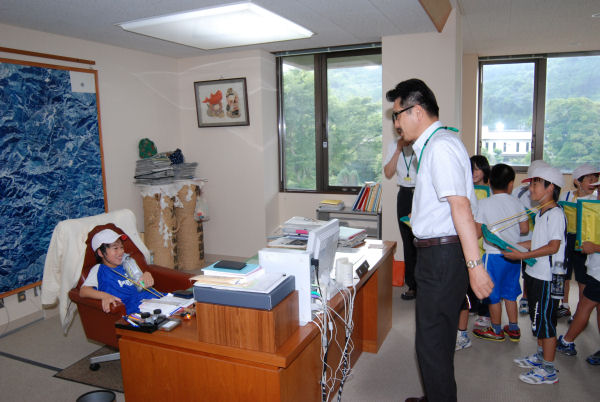- 松崎小学校3年生が役場を訪れ、町長室や議場など庁舎内を見学しました。