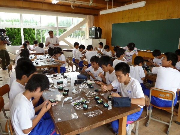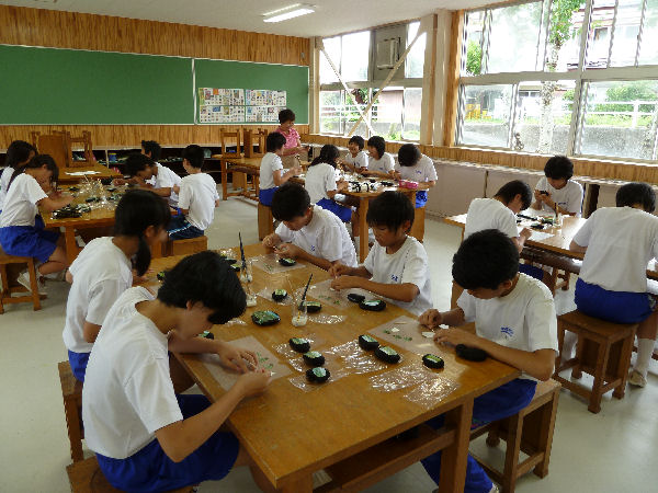 - 松崎中学校では、第16回棚田サミット参加者に差し上げる記念品「いづこいし」の制作を行いました。 生徒たちは真剣なまなざしで、一つ一つ丁寧に仕上げ、メッセージを添えてラッピングしました。
