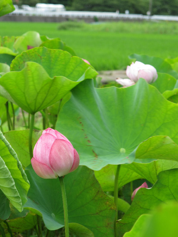 - 岩科地区の水田では、ハスの花が盛りを迎えています。