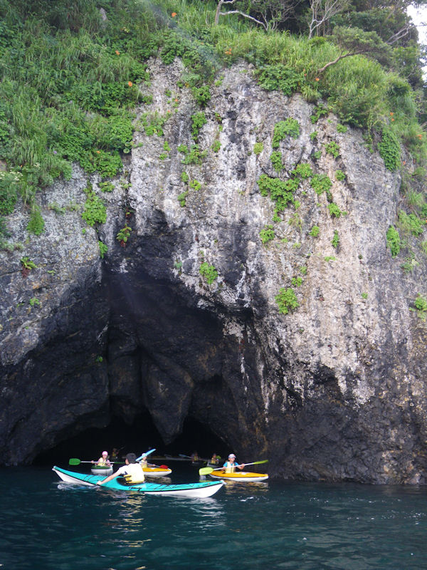 - 海洋グラブでは、松崎海岸から萩谷崎までの海洋ツーリングを行いました。 途中、洞窟めぐりなど楽しみながら進み、萩谷に着くと、元気な子供たちはひと泳ぎ。 帰りはちょっとお疲れモードでしたが、全員無事に帰港しました。