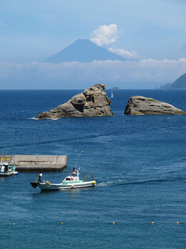 - 今日も快晴の一日となりました。 雲見海水浴場からは、きれいに富士山が望めました。