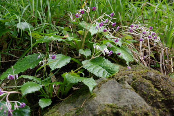 - 奥山では岩たばこが咲き始めました。 葉がたばこの葉に似ていて、岩のところに生えることから、この名がついています。