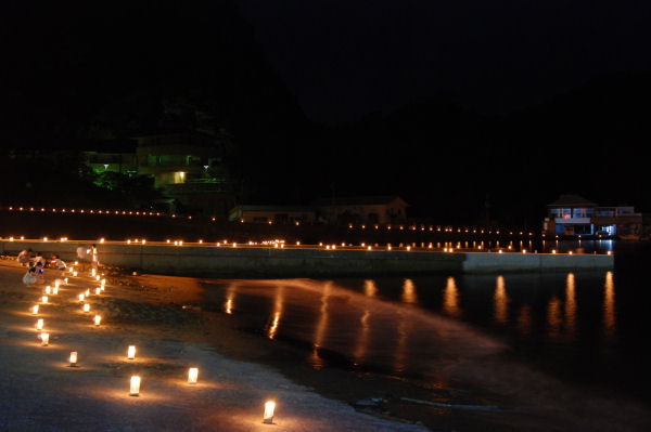 - 昨晩から22日までの4日間、雲見海岸では、キャンドルロードを開催しています。ほのかに揺らぐキャンドルの明かりが幻想的な風景を創っています。