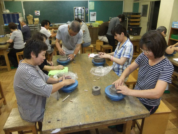 - 昨晩、松崎小学校図工室では、初心者のための陶芸教室が開催されました。参加者は講師の鈴木さんから説明を受け、それぞれが作品作りに取り組みました。