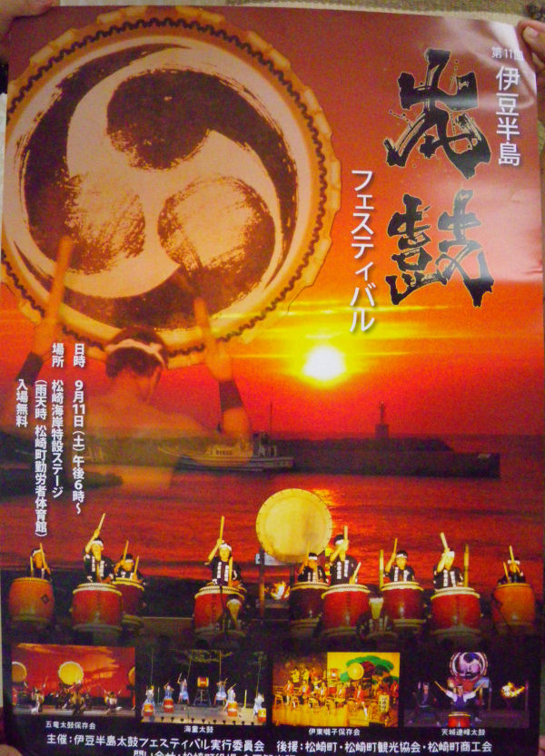 - 9月11日に松崎海岸で開催される第11回伊豆半島太鼓フェスティバルのポスターが完成しました。