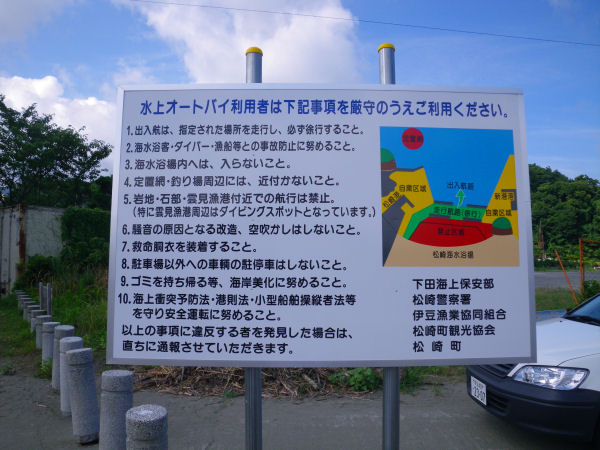 - 松崎海岸に、水上オートバイの利用者への看板を設置しました。マナーを守り、海水浴場の安全・美化にご協力をお願いします。