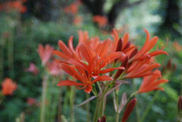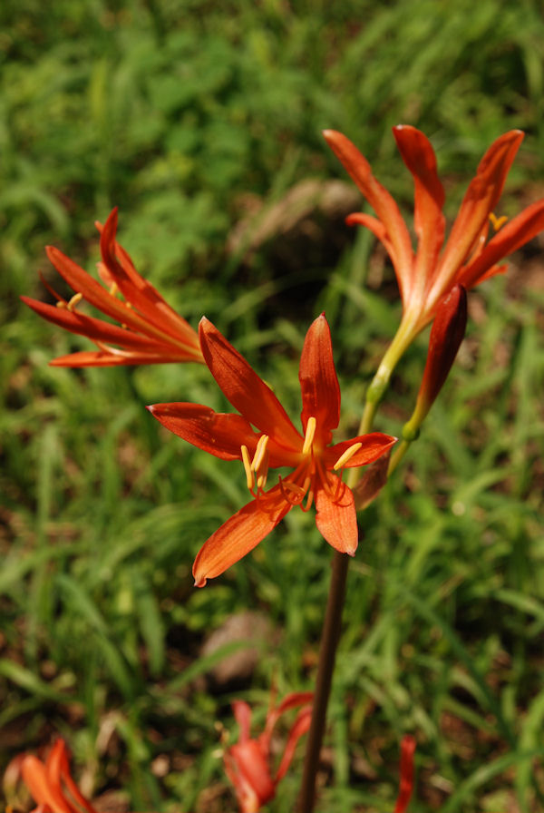 - 雲見方面へ向かう国道136号では、路肩でオレンジ色のキツネノカミソリが咲き揃ってきました。