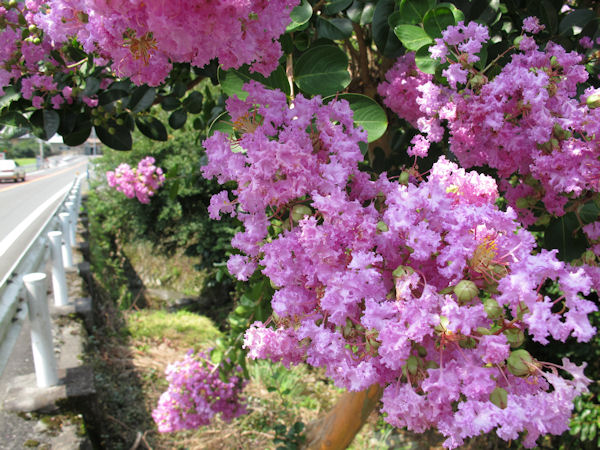 - 道路沿いや河川沿いでは、サルスベリの花が今を盛りに咲いています。